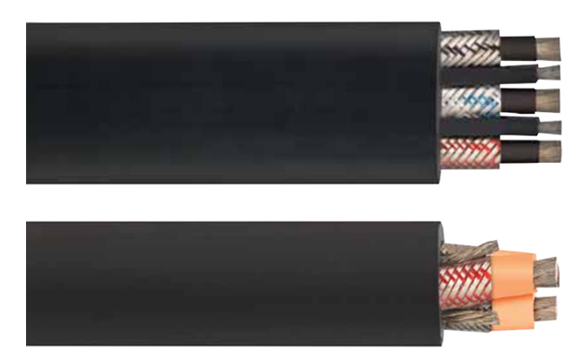 • Two conductors in contact with the flexible copper braid shield